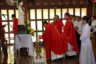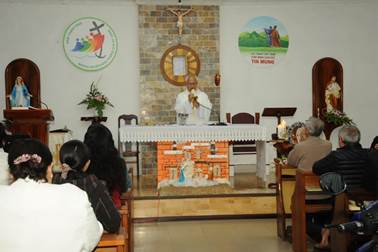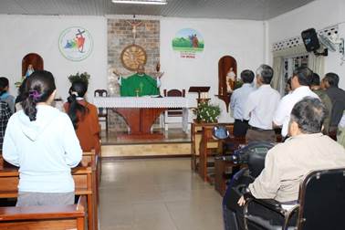 Thánh lễ cử hành tại Nhà nguyện TTHH Đức Mẹ Vô Nhiễm Thác Mơ do cha Giuse Nguyễn Quốc Loan chủ tế cùng Cha phụ tá Giáo xứ Phước Quả.