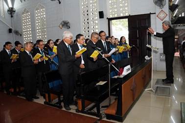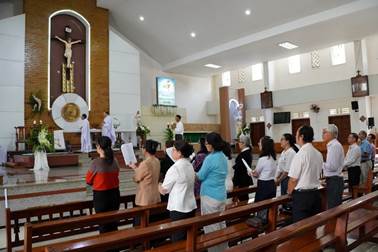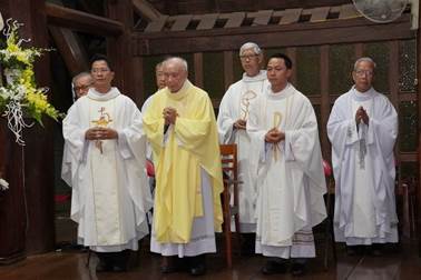 Thánh lễ cử hành long trọng vào lúc 10g00, tại Nhà thờ Vinh Hòa, do Cha Giuse Nguyễn Ý Định chủ tế cùng với Cha GB. Hà Văn Ánh.
