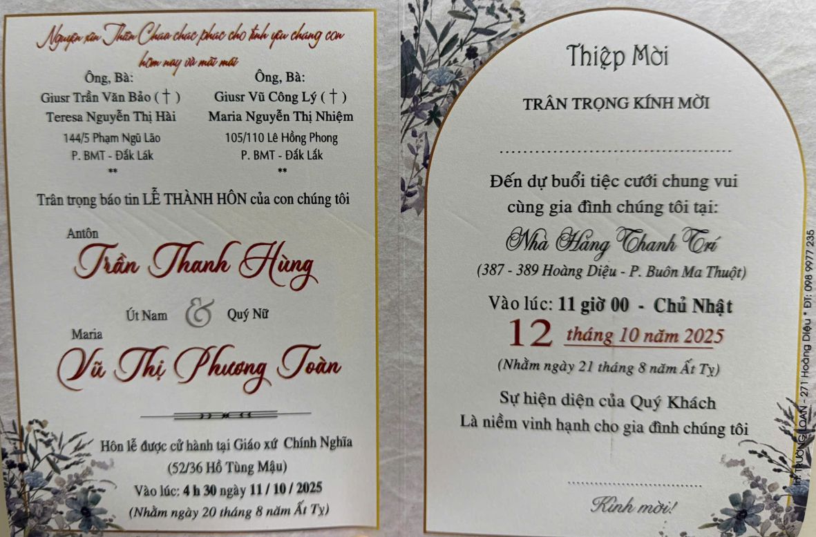 Trân trọng báo tin Lễ Thành Hôn con anh Giuse Vũ Công Lý (RIP)