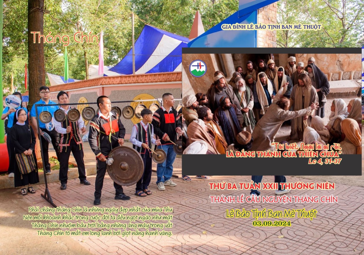 Theo thông lệ hàng tháng, chúng con trân trọng kính mời Quý Đức Cha, Quý Cha và Anh Chị Em cùng hiệp thông tham dự Thánh lễ cầu nguyện tâm tình tháng Chín, vào lúc 5g30 sáng thứ Ba, ngày 03.9.2024 tại nhà nguyện Trung tâm Mục vụ (số 01 Trần Hưng Đạo, TP.BMT), theo ý nguyện sau đây: