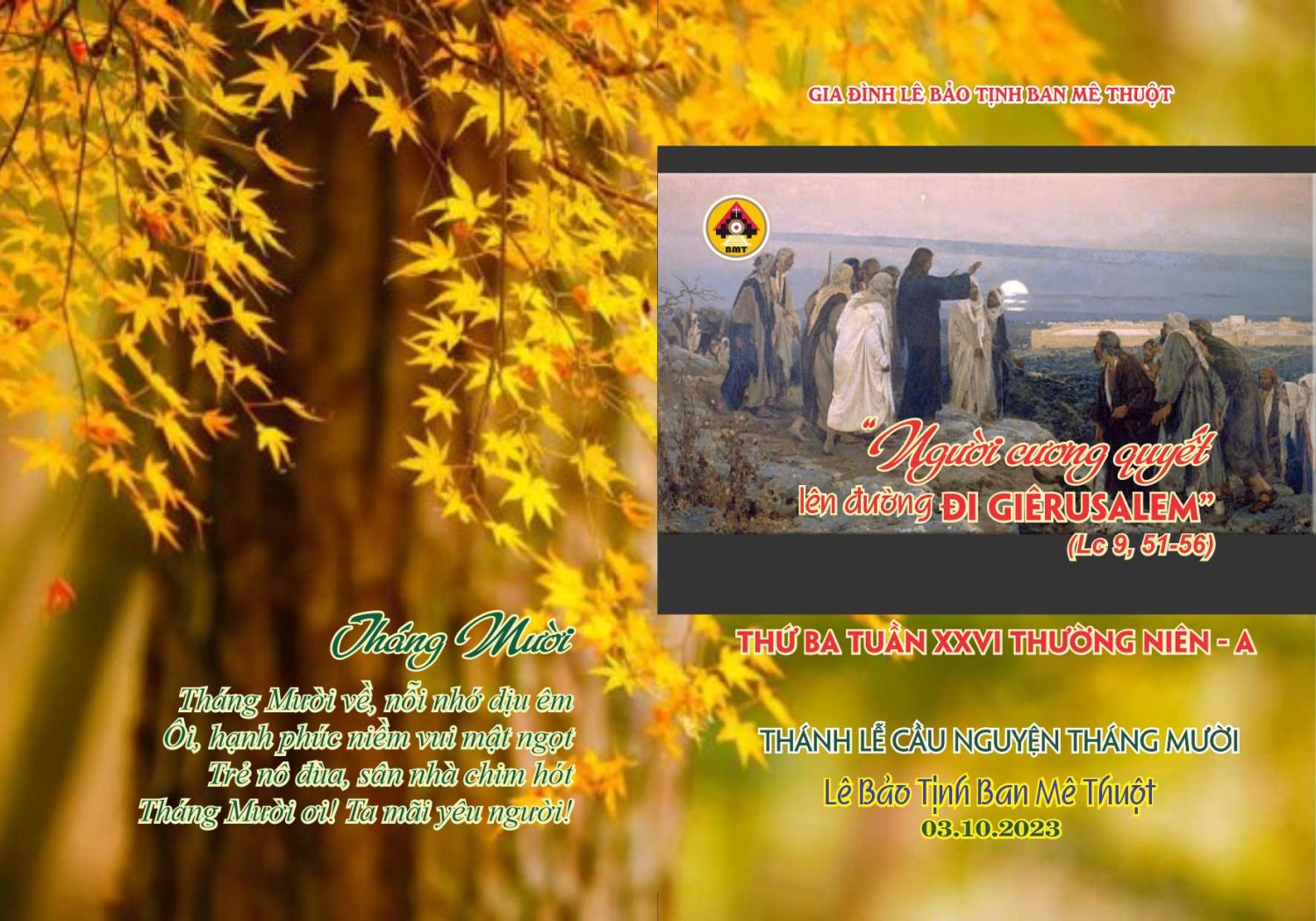 Trong tháng này, chúng con trân trọng kính mời Quý Đức Cha, Quý Cha và Anh Chị Em cùng hiệp thông tham dự Thánh lễ vào lúc 5g30 sáng thứ Ba ngày 03.10.2023 tại nhà nguyện Trung tâm Mục vụ (số 01 Trần Hưng Đạo, TP.BMT), cầu nguyện theo tâm tình tháng Mười: