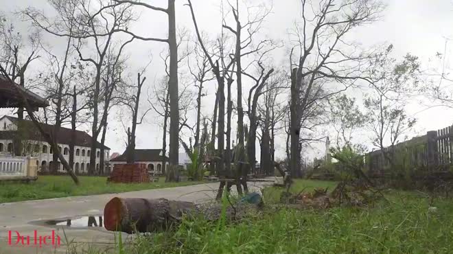 Cơn bão 13 tàn khốc khiến hàng chục cây sao đen cổ thụ hơn 130 năm tuổi quanh khuôn viên Tiểu chủng viện Làng Sông bị gãy đổ ngổn ngang. Những mái ngói rêu phong vốn nhuốm màu thời gian nay thêm phần chắp vá. Khung cảnh nơi đây hoang tàn, cây cối ngã đổ bị chặt làm củi chất thành hàng dài bên trong khuôn viên.