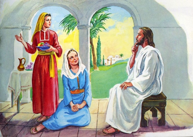 Thánh Luca, trong chương 10, 38-42, thuật lại việc bà Maria ngồi dưới chân Chúa Giêsu để nghe lời Người, trong khi Mácta bận rộn phục vụ. Khi Mácta phàn nàn, Chúa nói “Maria đã chọn phần tốt nhất”.